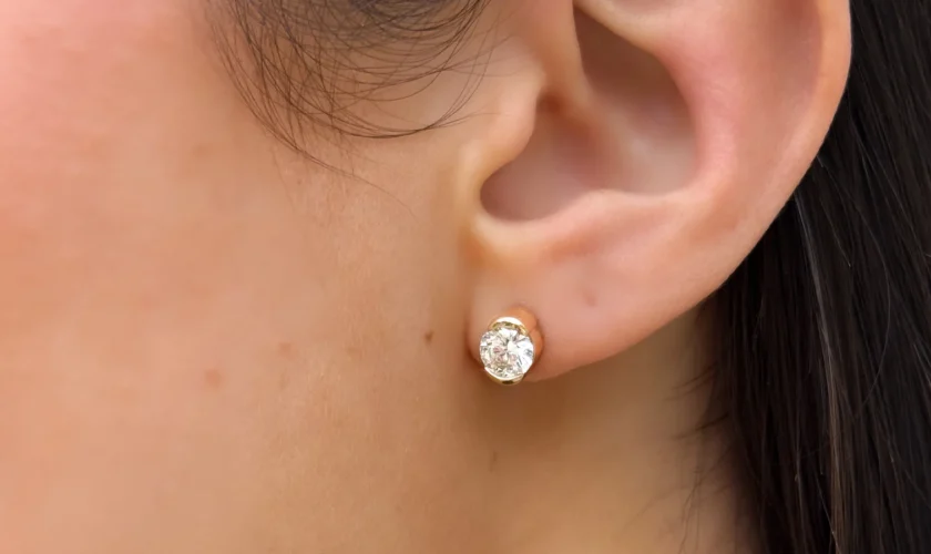 - Choker Necklace with Stud Earrings: A choker-style necklace, gold or diamond-studded, sits very close to your neck and draws immediate attention. When paired with matching studs, you can style your high-neck fits and collared blouses and shirts with a more refined look, perfect for formal outings.